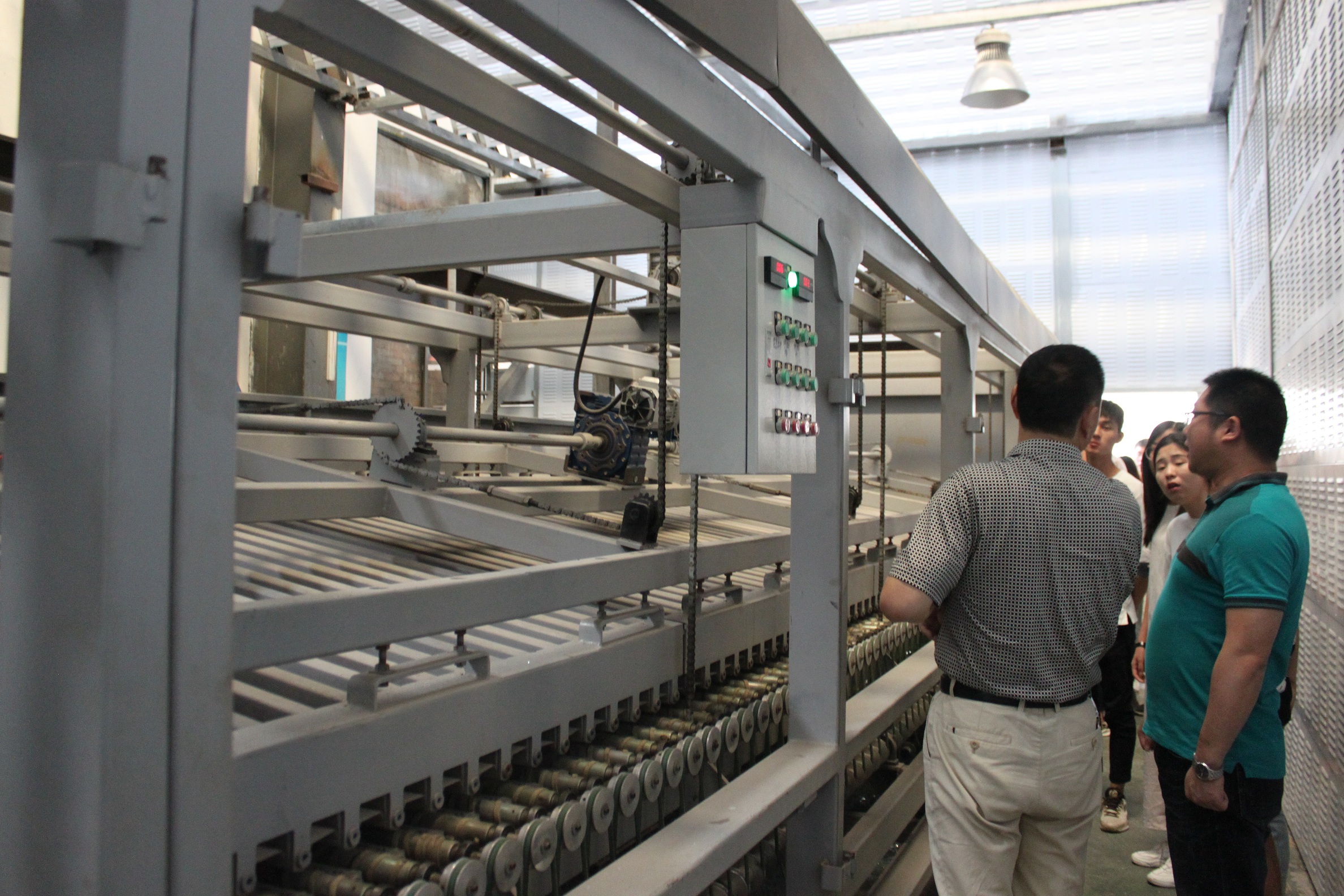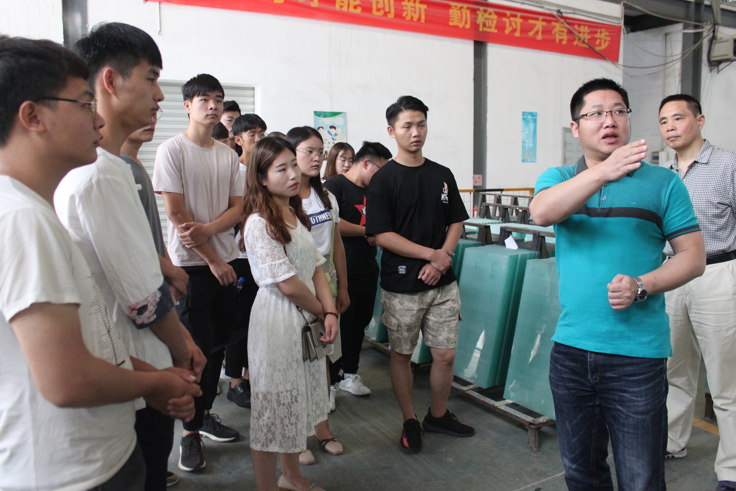 彩晶事業(yè)部長魏常宏的帶領下,綜合管理部葉、行政經(jīng)理馬向明的陪同下,我們來到了參觀的第一站:彩晶事業(yè)部制一部生產(chǎn)車間。魏部長細心的給同學們講解,并讓同學們看到了每一片玻璃從進廠、到切割、加工、打磨、水洗,到合格的離開這個廠區(qū)。車間機械的轟鳴聲,絲毫不減同學們的興趣與激情,同學們緊跟著隊伍,仔細的觀看,認真的聆聽,雖然聽得也只是只字片語,但從同學們頻頻點頭可以看出,同學們都心領神會。