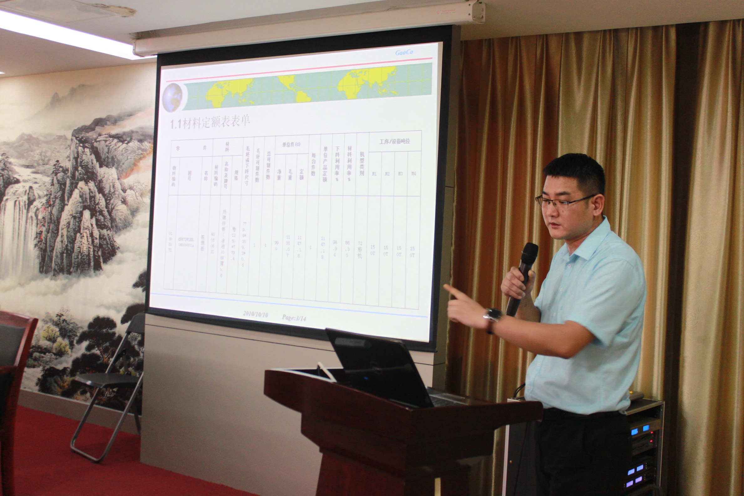 鈑金是針對(duì)金屬薄板(通常在6mm以下)一種綜合冷加工工藝,包括剪、沖/切/復(fù)合、折、鉚接、拼接、成型(如汽車(chē)車(chē)身)等。鈑金具有重量輕、強(qiáng)度高、導(dǎo)電(能夠用于電磁屏蔽)、成本低、大規(guī)模量產(chǎn)性能好等特點(diǎn),在電子電器、通信、汽車(chē)工業(yè)、醫(yī)療器械等領(lǐng)域得到了廣泛應(yīng)用,合肥高科生產(chǎn)的鈑金件多為空調(diào)、冰箱、電視背板等產(chǎn)品。此次培訓(xùn),丁部長(zhǎng)主要從以下六點(diǎn)知識(shí)進(jìn)入:材料定額、設(shè)備噸位加工、產(chǎn)品回購(gòu)價(jià)計(jì)算、財(cái)務(wù)結(jié)算、前側(cè)板計(jì)價(jià)實(shí)例,以及試題。