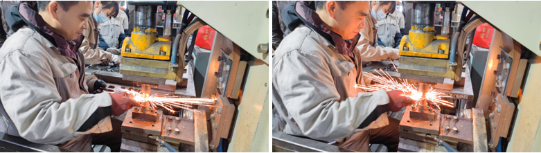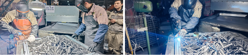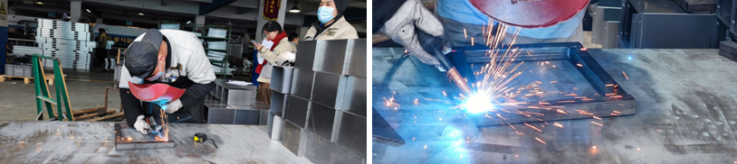 鈑金加工部參加技能比賽的項目是:折彎、焊接實操,評分規(guī)則是:用時最短、誤差最小、焊接最好為評分最高。金花四濺,光彩耀目,焊的是質(zhì)量,接的是客源。