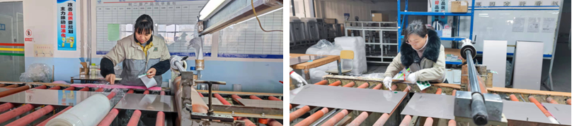 彩晶事業(yè)部參加技能打比賽的項目是:自動線架板調(diào)機、包裝劃膜工序、切割掰片,一個小組三個人共同完成,上料、附膜、包裝,一氣呵成,在規(guī)定的時間內(nèi),以最后包裝完成為計數(shù)總量。