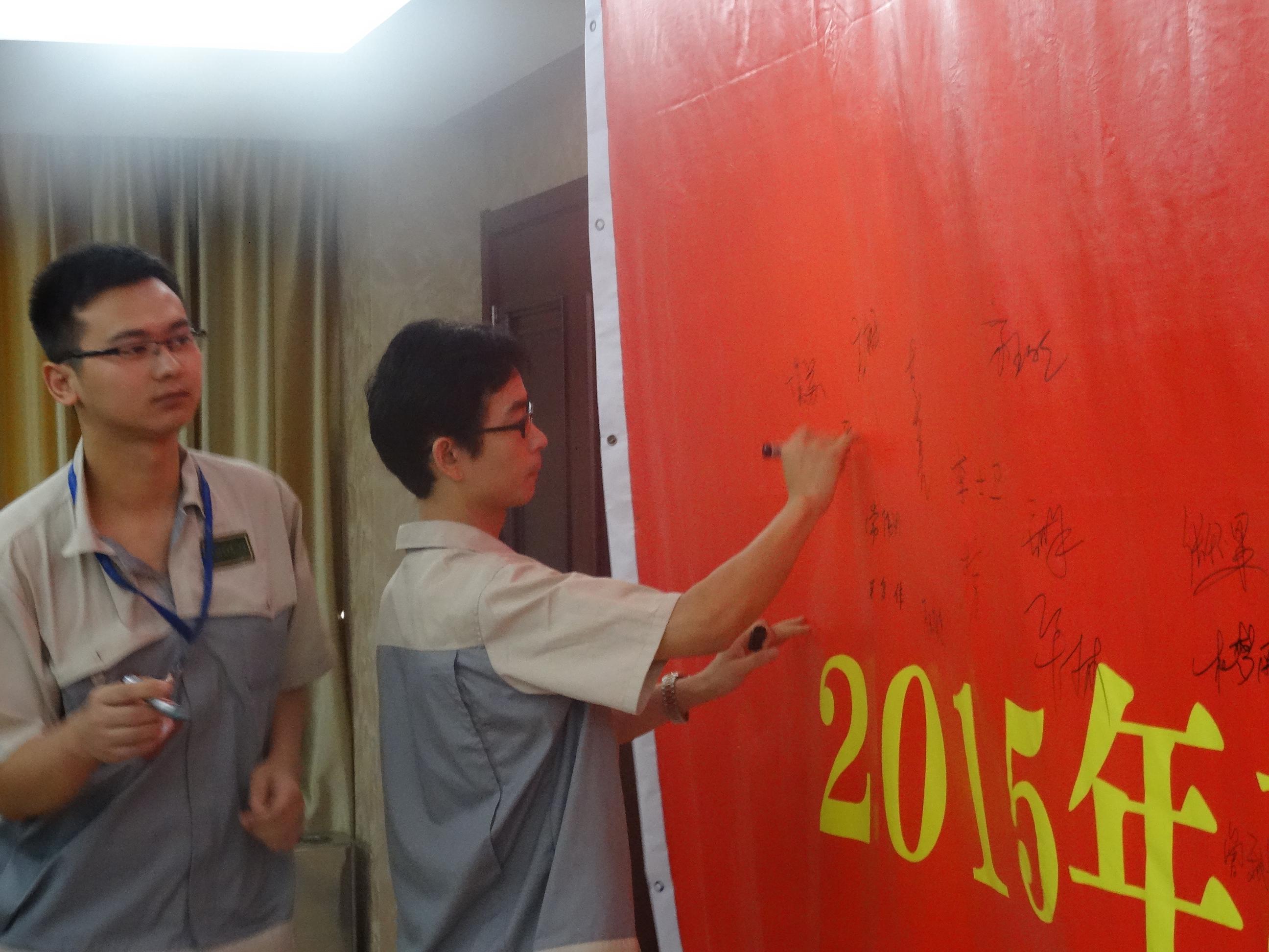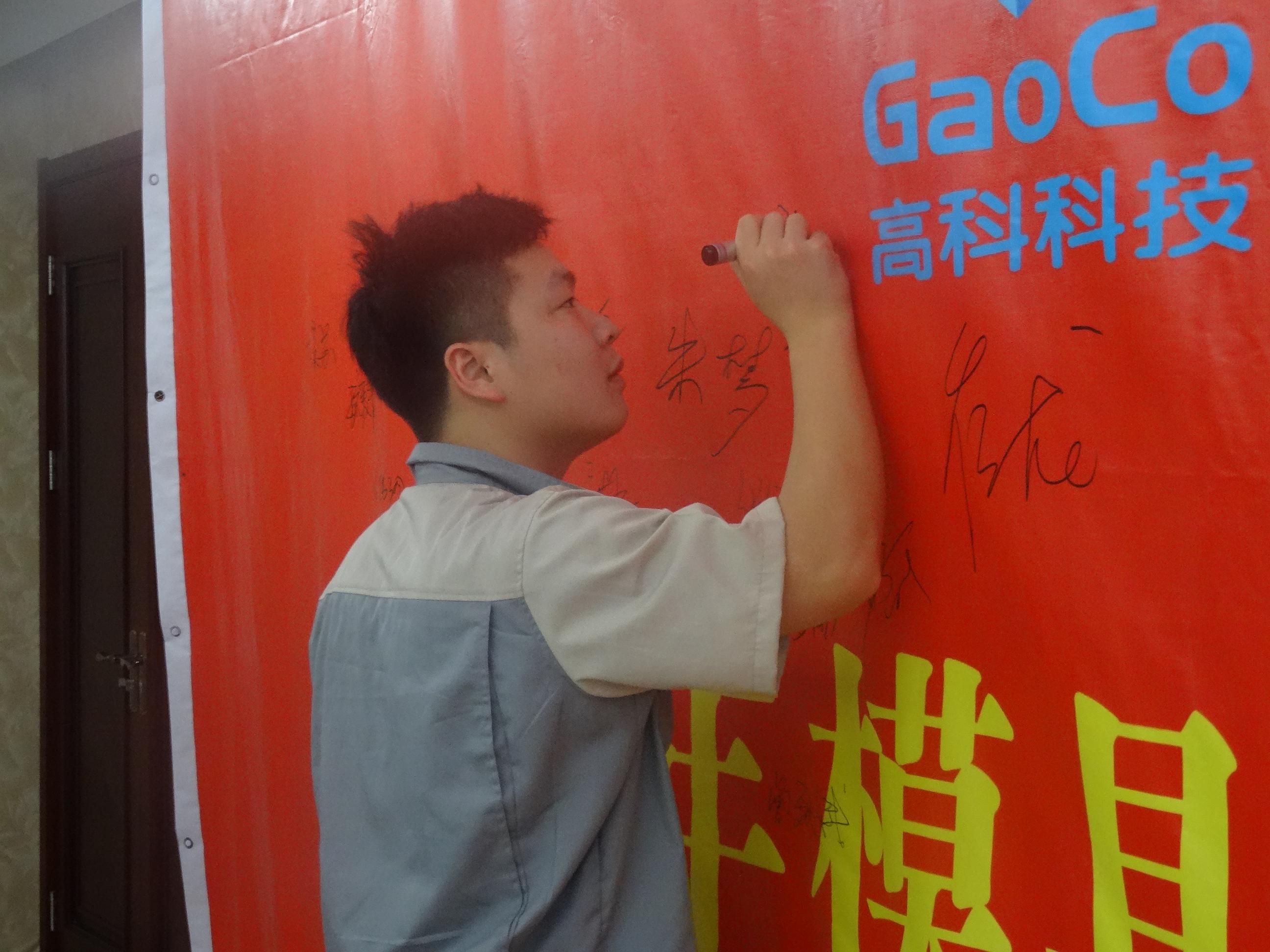隨后模具事業(yè)部丁部長帶領(lǐng)全體人員進(jìn)行安全生產(chǎn)月宣誓,并在誓師大會(huì)橫幅上簽名。