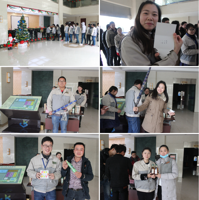 整個(gè)活動(dòng)現(xiàn)場全程的為大家播放有關(guān)的圣誕歌曲,烘托了現(xiàn)在氣氛,最熱鬧、激動(dòng)人心的是抽獎(jiǎng)環(huán)節(jié),每個(gè)獎(jiǎng)品都寫在賀卡里,賀卡里有實(shí)物獎(jiǎng)和新年祝福語!